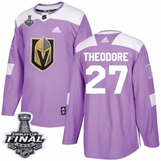 Men's Adidas Vegas Golden Knights #27 Shea Theodore Authentic Purple Fights Cancer Practice 2018 Stanley Cup Final NHL Jersey