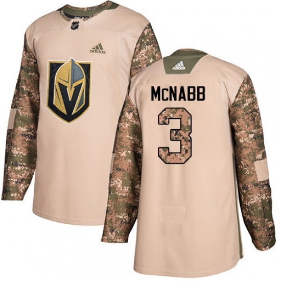 • Men's Adidas Vegas Golden Knights #3 Brayden McNabb Authentic Camo Veterans Day Practice NHL Jersey