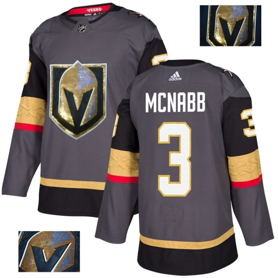• Men's Adidas Vegas Golden Knights #3 Brayden McNabb Authentic Gray Fashion Gold NHL Jersey