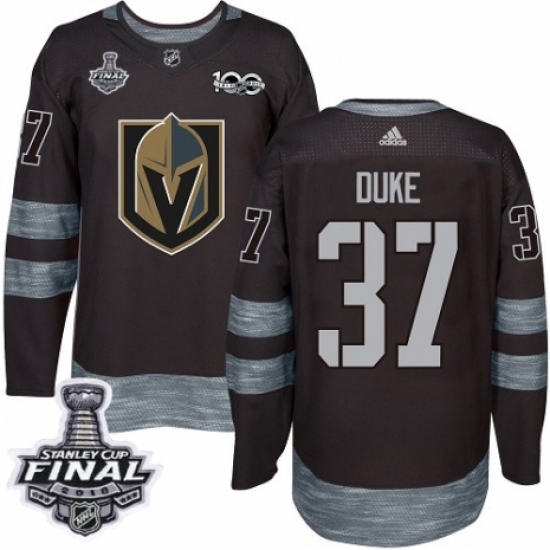 Men's Adidas Vegas Golden Knights #37 Reid Duke Authentic Black 1917-2017 100th Anniversary 2018 Stanley Cup Final NHL Jersey