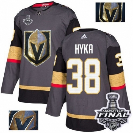 • Men's Adidas Vegas Golden Knights #38 Tomas Hyka Authentic Gray Fashion Gold 2018 Stanley Cup Final NHL Jersey