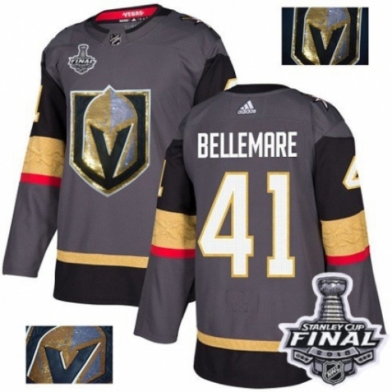 • Men's Adidas Vegas Golden Knights #41 Pierre-Edouard Bellemare Authentic Gray Fashion Gold 2018 Stanley Cup Final NHL Jersey