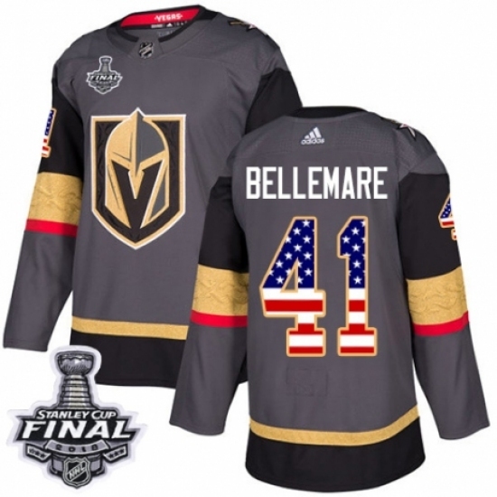 • Men's Adidas Vegas Golden Knights #41 Pierre-Edouard Bellemare Authentic Gray USA Flag Fashion 2018 Stanley Cup Final NHL Jersey