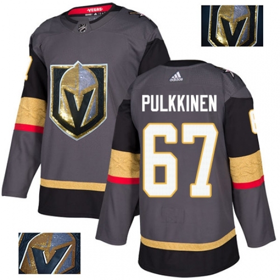 • Men's Adidas Vegas Golden Knights #67 Teemu Pulkkinen Authentic Gray Fashion Gold NHL Jersey
