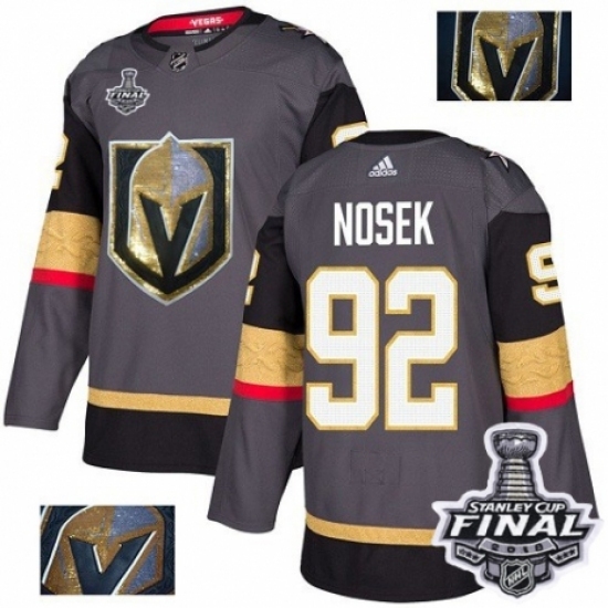 • Men's Adidas Vegas Golden Knights #92 Tomas Nosek Authentic Gray Fashion Gold 2018 Stanley Cup Final NHL Jersey