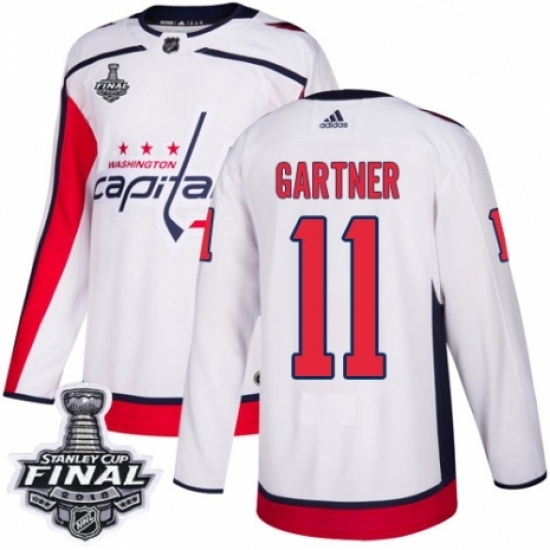 • Men's Adidas Washington Capitals #11 Mike Gartner Authentic White Away 2018 Stanley Cup Final NHL Jersey
