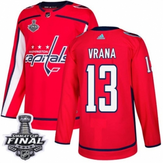 • Men's Adidas Washington Capitals #13 Jakub Vrana Authentic Red Home 2018 Stanley Cup Final NHL Jersey