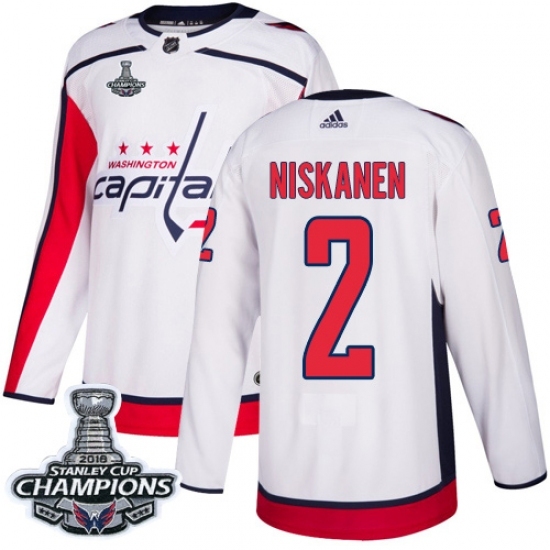 • Men's Adidas Washington Capitals #2 Matt Niskanen Authentic White Away 2018 Stanley Cup Final Champions NHL Jersey