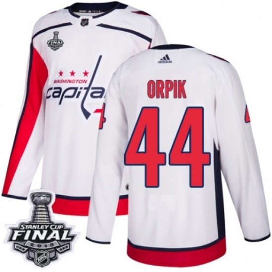 • Men's Adidas Washington Capitals #44 Brooks Orpik Authentic White Away 2018 Stanley Cup Final NHL Jersey