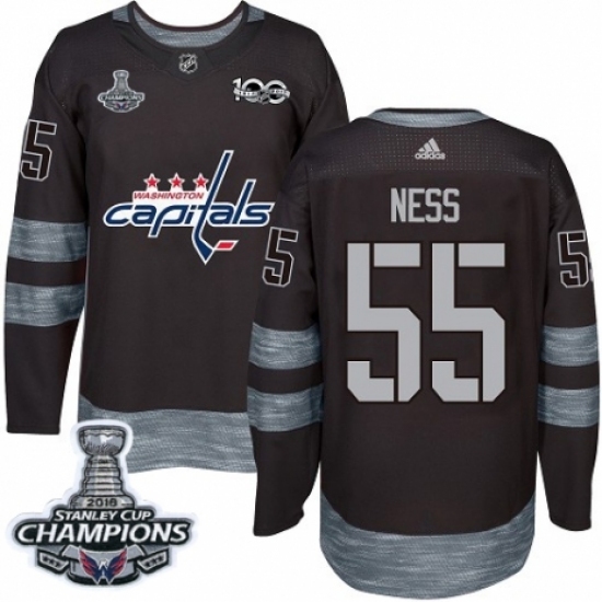 • Men's Adidas Washington Capitals #55 Aaron Ness Authentic Black 1917-2017 100th Anniversary 2018 Stanley Cup Final Champions NHL Jersey