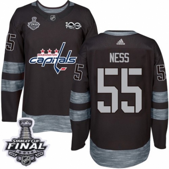 • Men's Adidas Washington Capitals #55 Aaron Ness Authentic Black 1917-2017 100th Anniversary 2018 Stanley Cup Final NHL Jersey