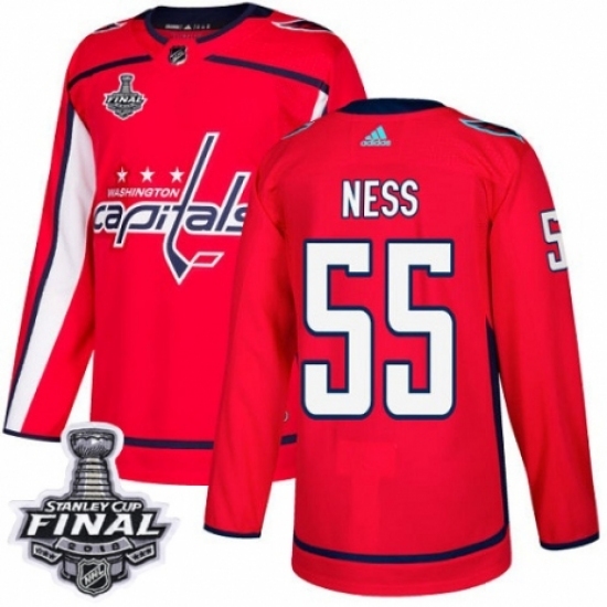 • Men's Adidas Washington Capitals #55 Aaron Ness Authentic Red Home 2018 Stanley Cup Final NHL Jersey