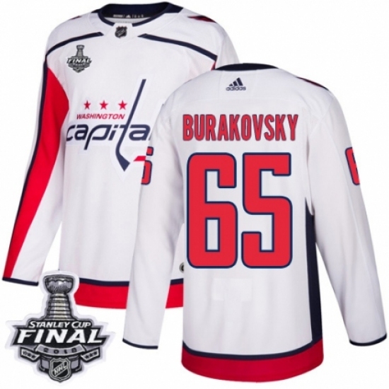 • Men's Adidas Washington Capitals #65 Andre Burakovsky Authentic White Away 2018 Stanley Cup Final NHL Jersey