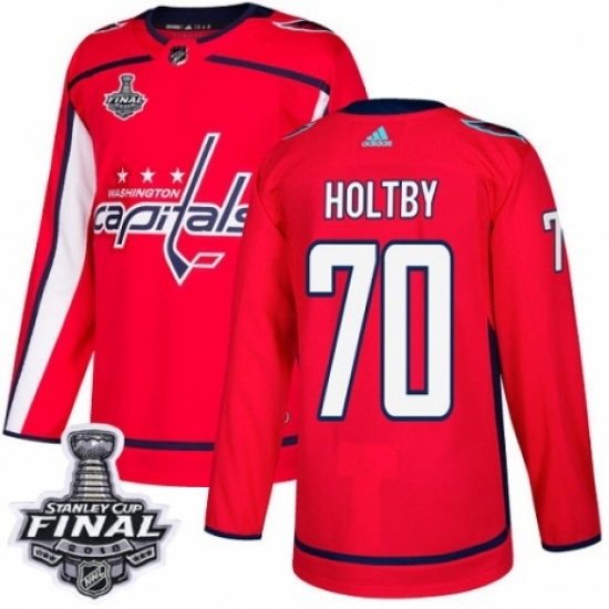 Men's Adidas Washington Capitals #70 Braden Holtby Premier Red Home 2018 Stanley Cup Final NHL Jersey