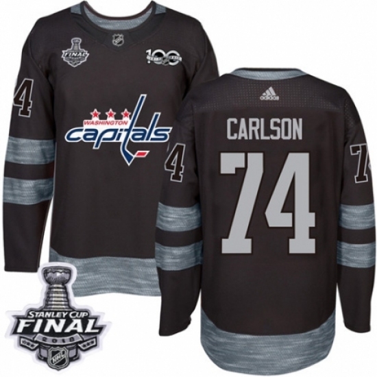 • Men's Adidas Washington Capitals #74 John Carlson Authentic Black 1917-2017 100th Anniversary 2018 Stanley Cup Final NHL Jersey