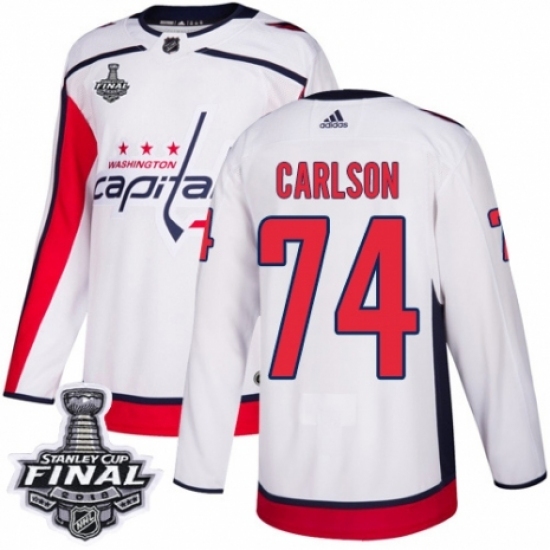 Men's Adidas Washington Capitals #74 John Carlson Authentic White Away 2018 Stanley Cup Final NHL Jersey