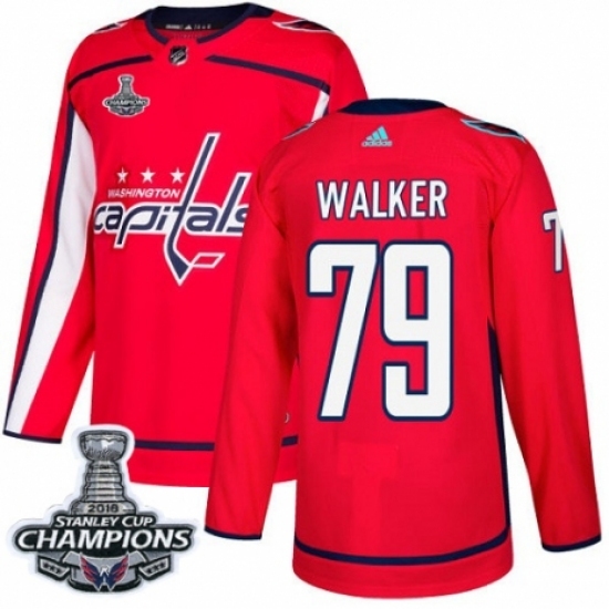 Men's Adidas Washington Capitals #79 Nathan Walker Premier Red Home 2018 Stanley Cup Final Champions NHL Jersey