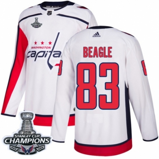 Men's Adidas Washington Capitals #83 Jay Beagle Authentic White Away 2018 Stanley Cup Final Champions NHL Jersey