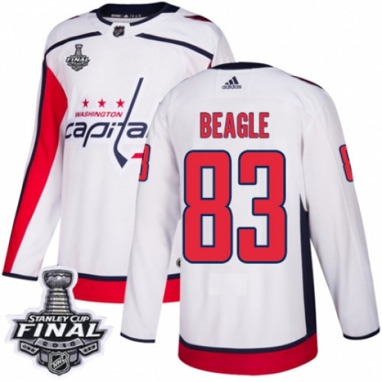 Men's Adidas Washington Capitals #83 Jay Beagle Authentic White Away 2018 Stanley Cup Final NHL Jersey