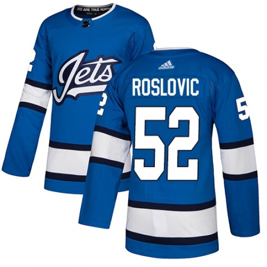 • Men's Adidas Winnipeg Jets #52 Jack Roslovic Authentic Blue Alternate NHL Jersey