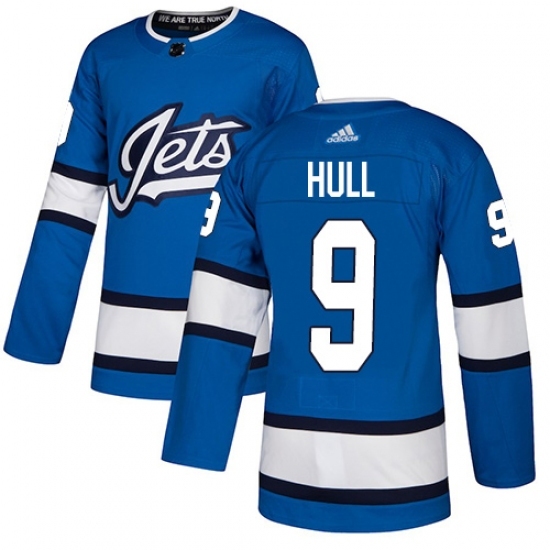 • Men's Adidas Winnipeg Jets #9 Bobby Hull Authentic Blue Alternate NHL Jersey