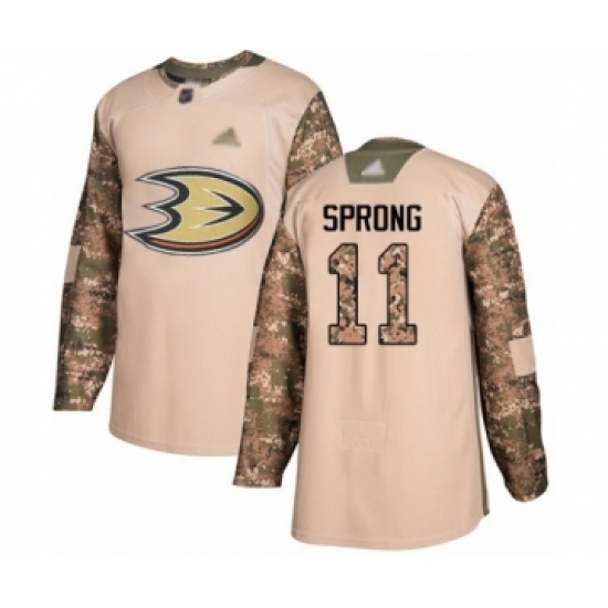 • Men's Anaheim Ducks #11 Daniel Sprong Authentic Camo Veterans Day Practice Hockey Jersey