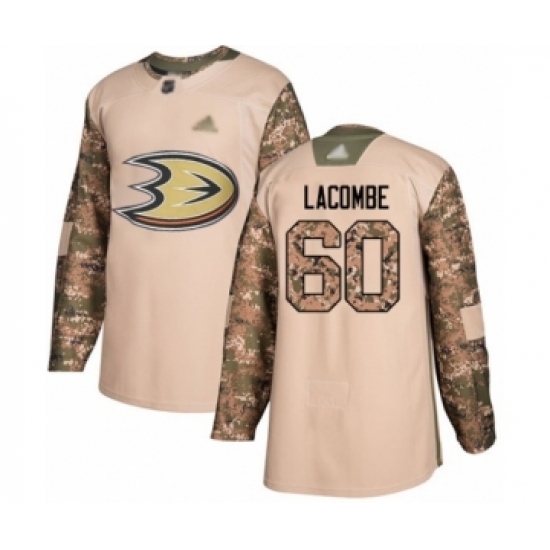 Men's Anaheim Ducks #60 Jackson Lacombe Authentic Camo Veterans Day Practice Hockey Jersey