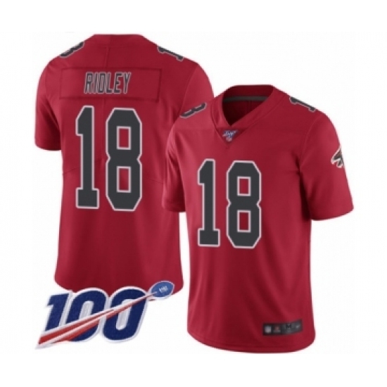 • Men's Atlanta Falcons #18 Calvin Ridley Limited Red Rush Vapor Untouchable 100th Season Football Jersey