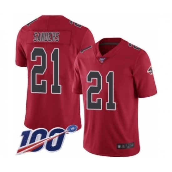 Men's Atlanta Falcons #21 Deion Sanders Limited Red Rush Vapor Untouchable 100th Season Football Jersey