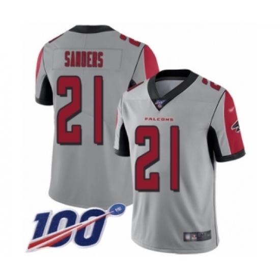 • Men's Atlanta Falcons #21 Deion Sanders Limited Silver Inverted Legend 100th Season Football Jersey