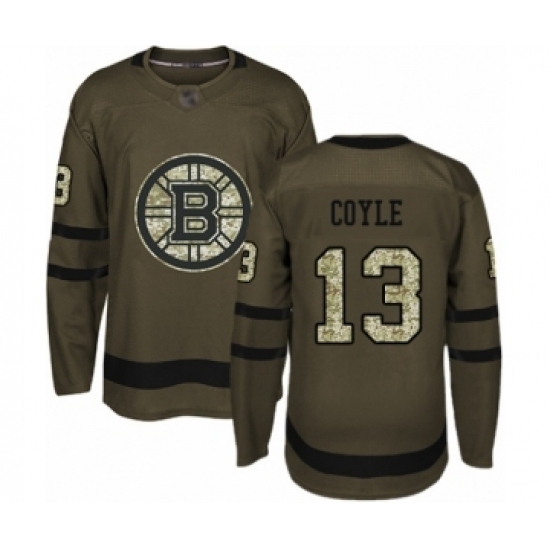 • Men's Boston Bruins #13 Charlie Coyle Authentic Green Salute to Service Hockey Jersey