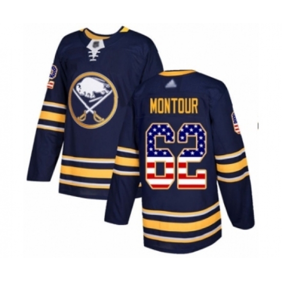 Men's Buffalo Sabres #62 Brandon Montour Authentic Navy Blue USA Flag Fashion Hockey Jersey