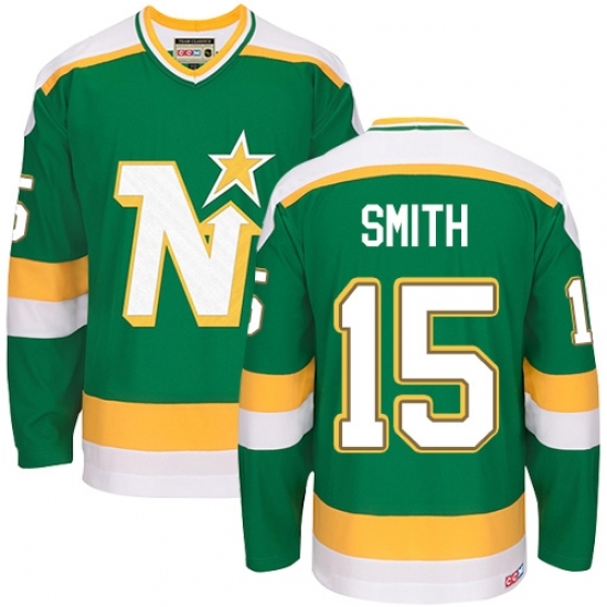 • Men's CCM Dallas Stars #15 Bobby Smith Authentic Green Throwback NHL Jersey