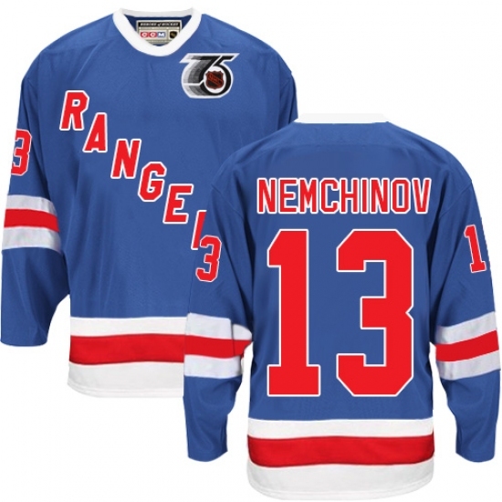 • Men's CCM New York Rangers #13 Sergei Nemchinov Authentic Royal Blue 75TH Throwback NHL Jersey