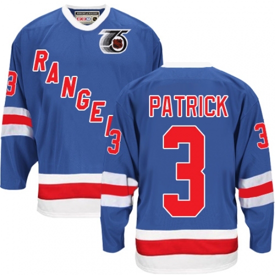 Men's CCM New York Rangers #3 James Patrick Authentic Royal Blue 75TH Throwback NHL Jersey