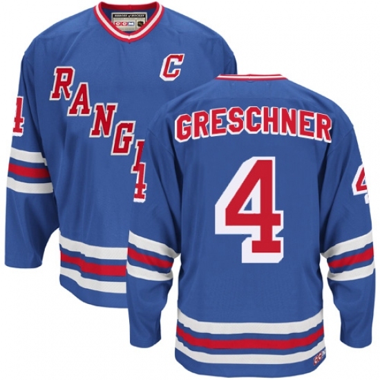 Men's CCM New York Rangers #4 Ron Greschner Authentic Royal Blue Heroes of Hockey Alumni Throwback NHL Jersey
