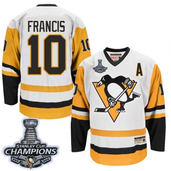• Men's CCM Pittsburgh Penguins #10 Ron Francis Authentic White Throwback 2017 Stanley Cup Champions NHL Jersey