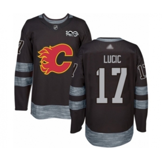 • Men's Calgary Flames #17 Milan Lucic Authentic Black 1917-2017 100th Anniversary Hockey Jersey