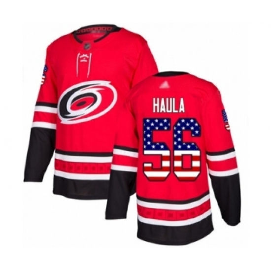 Men's Carolina Hurricanes #56 Erik Haula Authentic Red USA Flag Fashion Hockey Jersey