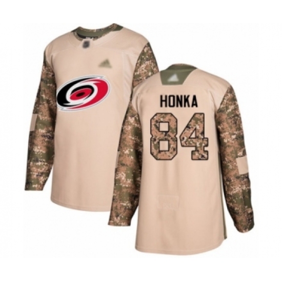 Men's Carolina Hurricanes #84 Anttoni Honka Authentic Camo Veterans Day Practice Hockey Jersey