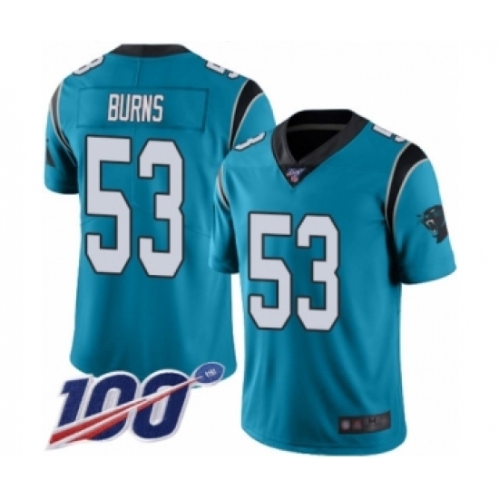 • Men's Carolina Panthers #53 Brian Burns Blue Alternate Vapor Untouchable Limited Player 100th Season Football Jersey