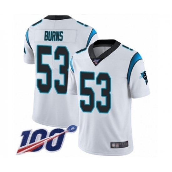 • Men's Carolina Panthers #53 Brian Burns White Vapor Untouchable Limited Player 100th Season Football Jersey