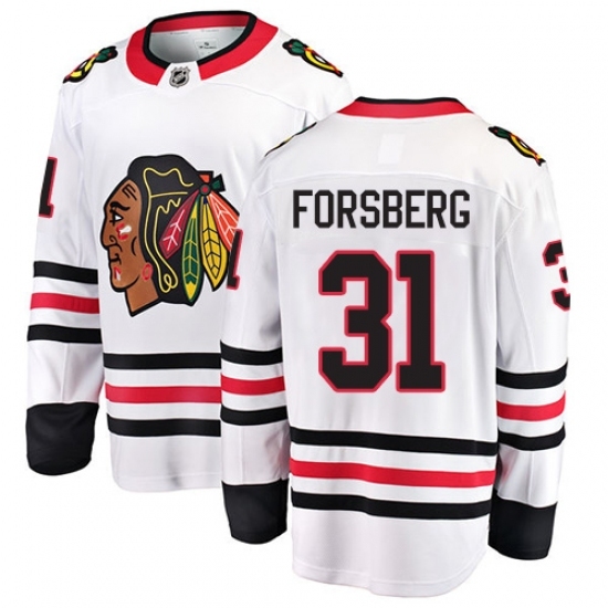 Men's Chicago Blackhawks #31 Anton Forsberg Fanatics Branded White Away Breakaway NHL Jersey