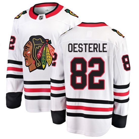 Men's Chicago Blackhawks #82 Jordan Oesterle Fanatics Branded White Away Breakaway NHL Jersey