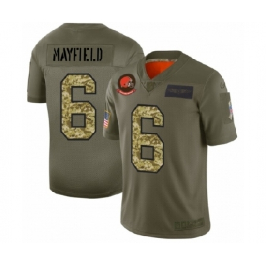 Men's Cleveland Browns #6 Baker Mayfield 2019 Olive Camo Salute to Service Limited Jersey