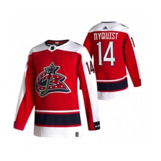 • Men's Columbus Blue Jackets #14 Gustav Nyquist Red 2020-21 Reverse Retro Alternate Hockey Jersey