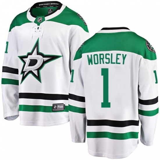 • Men's Dallas Stars #1 Gump Worsley Fanatics Branded White Away Breakaway NHL Jersey