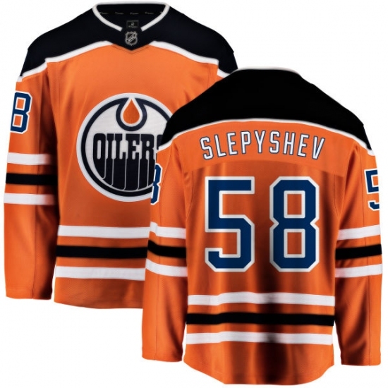 • Men's Edmonton Oilers #58 Anton Slepyshev Fanatics Branded Orange Home Breakaway NHL Jersey