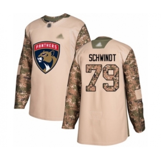 • Men's Florida Panthers #79 Cole Schwindt Authentic Camo Veterans Day Practice Hockey Jersey