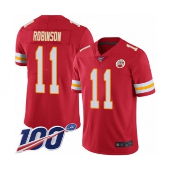 • Men's Kansas City Chiefs #11 Demarcus Robinson Red Team Color Vapor Untouchable Limited Player 100th Season Football Jersey